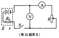 (2)电源的输出功率P跟外电路的电阻R有关,如图Ⅱ是研究它们的关系的实验电路。为了便于进行实验和保护蓄电池,给蓄电池串联了一个定值电阻RO,把它们一起看作电源(图中虚线框内部分)。电源的内电阻就是蓄电池的内电阻和定值电阻RO之和,用r表示。电源的电动势用E表示。不考虑电表对电路的影响。