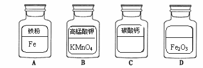 ( 1 ) C 瓶中药品的化学式为 ,它的一种用途是 ; D 瓶中药品的名称是 。