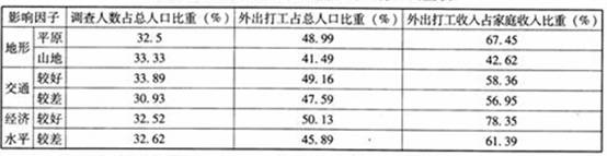 7.读下表,影响农民外出打工的因子,排序正确的是
