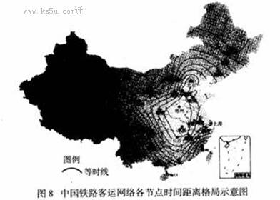 11.读图8,我国未来高速铁路网中,通往全国各地最短时间距离的中心枢纽最可能是