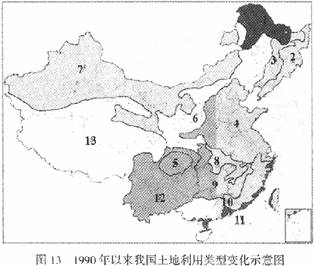 ②在气候变化下,东北、华北土地利用类型发生了什么变化?(8分)