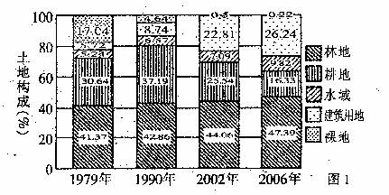 读我国某城市土地利用结构变化图(图l),回答1-2题