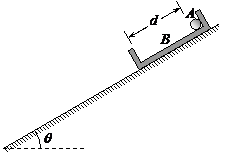 ,槽内靠近右侧壁处有一小球A,它到凹槽内左壁侧的距离d=0.10m.A、B的质量都为m=2.0kg,B与斜面间的最大静摩擦力可认为等于滑动摩擦力,不计A、B之间的摩擦,斜面足够长.现同时由静止释放A、B,经过一段时间,A与B的侧壁发生碰撞,碰撞过程不损失机械能,碰撞时间极短.取重力加速度g=10m/s2.求: