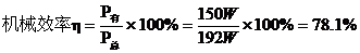 电动机的有用功率P有=W/t=4.5×104/(5×60)W=150W.....(1分)