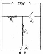 小明家买了一台电烤箱,有低、中、高温三个档位的发热功率。如图是其内部简化电路图,开关S1可分别与触点a、b接触。已知:两根电热丝R1=44Ω,R2=44Ω,电源电压220V保持不变。请分析和解答以下问题: