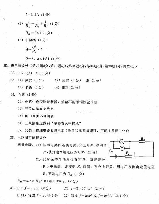 (3)灯泡工作一段时间后会发热,说明有一部分电能转化成了热能。(3分)