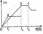 2AB在不同温度和压强改变条件下,产物AB的生成情况,如右图所示:a为500℃,b为300℃时情况,c为300℃时从时间t3开始向容器中加压的情况,则下列叙述正确的是(