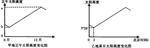 10.当甲地正午太阳高度为b时,乙地太阳高度如右图所示,则乙地的坐标为