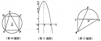 10.如图,⊙O是正方形ABCD的外接圆,点P在CD上,则∠APB的度数为________.