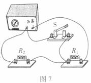 26.如图7所示,电源两端电压保持不变,当开关S闭合时,通过R1的电流为2A;当S断开时,R1两端的电压为6V,R2消耗的电功率为9W,则电源两端电压为_____________V。