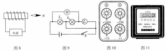 28.如图9所示电路,在○里填上电压表或电流表的符号,当开关S闭合时,灯L1与L2并联。