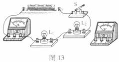 小丽同学在探究串联电路电流规律的实验中.如图13所示连接电路,闭合开关S后,发现灯L1、L2均不发光,电流表示数为零。为判定电路中何处发生故障,她用一个电压表分别接到电流表、灯L1、L2的两端测量电压。测量结果是:灯L1、灯L2两端均无电压,电流表两端有电压。由以上实验现象,小丽分析找出了电路发生故障的原因。你认为电路的故障可能是____________________。
