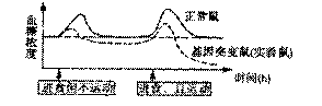 下图是基因突变鼠和正常鼠在进食不运动和进食且运动两种状态下血糖浓度的变化。根据图中信息,基因突变鼠出现所述状况的原因最可能是
