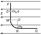 (3) 在水平杆NQ上的N点套一个质量为m2=0.6 kg、不带电的小环2,小环1和2与NQ间的动摩擦因数μ=0.1。现将小环1移至距离M点上方h2=14.4 m处由静止释放,两环碰撞后,小环2在NQ上通过的最大距离是s2=8 m。两环间无电荷转移。环与杆之间的最大静摩擦力等于滑动摩擦力。问经过足够长的时间,小环1的状态?小环1在水平杆NQ上运动通过的总路程s1=?