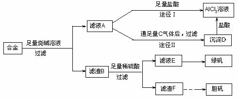 Ⅱ 某化学兴趣小组用含有铝、铁、铜的合金制取纯净的氯化铝溶液、绿矾晶体和胆矾晶体,以探索工业废料的再利用。其实验方案如下: