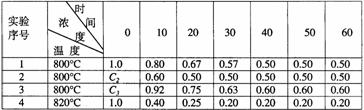 ⑵ 在实验2,A的初始浓度c2= mol/L,反应经20分钟就达到平衡,可推测实验2中还隐含的条件是 ;