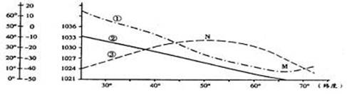 图3是冬至日时某经线的气温、气压和正午太阳高度变化曲线图,读图回答6-8题。