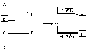 已知:A是淡黄色固体;B在通常情况下为无色液体;D是极易溶于水的无色气体,该气体通入AgNO3溶液产生既难溶于水又难溶于稀硝酸的白色沉淀;C、F、H、G含有同种元素。