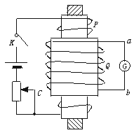6.如图1-36-6所示,原线圈P内有铁芯,原线圈与变阻器、电源、开关连成电路;副线圈Q套在P上,并与电流计G连成电路.实验时若发现副线圈中有感应电流i从a经G流向b,这可能是