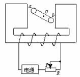 9.如图1-36-9所示,电源、滑动变阻器、带铁芯的线圈连接成闭合回路,ab是一个可绕垂直于纸面的O轴转动的闭合矩形金属线框,静止在图中位置,当滑动变阻器的滑动片P自左端向右端滑动时,线框ab将