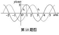 18.一简谐波在如图所示的x轴上传播,实线和虚线分别是t1=0和t2 =0.2s时刻的波形图.则