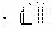 59、如图所示,质量M=0.40㎏的靶盒A位于光滑水平导轨上,开始时静止在O点,在O点右侧有范围很广的“相互作用区域”,如图中的虚线区域。当靶盒A进入相互作用区域时便有向左的水平恒力F=20N作用。在P处有一固定的发射器B,它可根据需要瞄准靶盒每次发射一颗水平速度V0=50m/s、质量m=0.10㎏的子弹,当子弹打入靶盒A后,便留在盒内,碰撞时间极短。若每当靶盒A停在或到达O点时,就有一颗子弹进入靶盒A内,求: