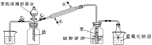 (1)实验开始时,关闭K2,开启K1和分液漏斗活塞,滴加苯和液溴的混合液,反应开始。过一会儿,在(Ⅲ)中可能观察的现象是 。