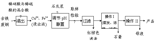 (16分)硫酸铜是一种应用极其广泛的化工原料。以下是某工厂用含铁废铜为原料生产胆矾(CuSO4·5H2O)的生产流程示意图: