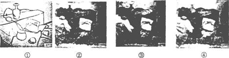 56.(1分)下面是一幅水粉画步骤图,请根据所学知识分析写出一幅水粉画作品的正确步骤.(按顺序写出序号)。