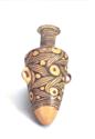 59.(1.5分)《漩涡纹尖底瓶》是件汲水器。.它的敞口、 收颈、鼓腹、尖底造型便于汲水时--和--,显示了先民的科学创造。纹样以--为中心,弧形线组成漩涡形,且上下左右互为连接,组织巧妙,具有很强的运动感,今天看来也是纹样的佳作。