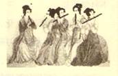 1. 右图中,奏乐乐女们排成一列,参差婀娜,动态各异,统一之中有变化,画面中似乎迷漫着清澈悦耳的音乐。对该图中两种演奏乐器的说法中正确的是 ![]()