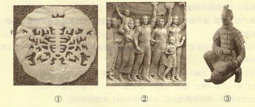 6. 各式各样的雕塑作品美化着我们的生活,将下列三件作品按圆雕、缕雕、浮雕的顺序排 列,正确的是![]()