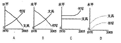 21.下列图中,能正确反映我国近期中学生文具和写字水平变化趋势的是 ( )![]()