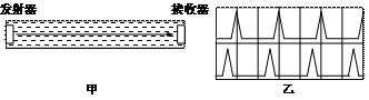 有一种示波器可以同时显示两列波形。对于这两列波,显示器上横向每格代表的时间间隔相同。利用此种示波器可以测量液体中的声速,实验装置的一部分如图甲所示,管内盛满液体,音频信号发生器所产生的脉冲信号由置于液体内的发射器发出,被接收器所接收,图乙为示波器的显示屏,屏上所显示的上、下两列波形分别为发射信号与接收信号,若已知发射的脉冲信号频率为f=2000Hz,发射器与接收器的距离为s=1.30m,管内液体中的声速为________m/s(已知所测声速应在1300-1600m/s之间,结果保留两位有效数字)。