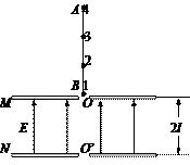 (12分)如图所示,两块相同的金属板M和N正对并水平放置,它们的正中央分别有小孔O和O’,两板间距离为2l,两板间存在竖直向上的匀强电场。AB是一长3L的轻质绝缘细杆,杆上等间距地固定着四个完全相同的带电小球,每个小球的电荷量为q、质量为m。第一个小球置于孔O处,将AB由静止释放,观察发现,从第2个小球进入电场到第3个小球刚要离开电场这一过程中AB杆一直做匀速直线运动,且杆保持竖直。求: