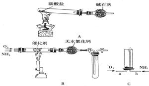 (2)将产生的氨气与过量的氧气通到装置B(催化剂为铂石棉)中,用酒精喷灯加热: