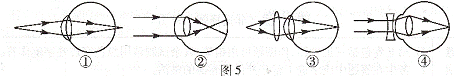 12.如图5所示的四幅图,有的能够说明近视眼或远视眼的成像原理,有的给出了近视眼或远视眼的矫正方法。下列判断正确的是:( )