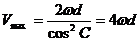 液体的临界角为C,当2θ=C=450时,V达到最大速度Vmax,