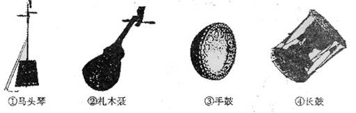 29.(1分)“五十六个民族,五十六朵花”,各个民族都有绚丽多彩的民族文化。请为歌典《辽阔的草原》、《桔梗谣》、《青藏高原》、《牡丹汗》依次配上相应民族的乐器应民族的乐器