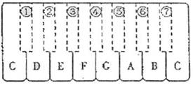 列按音阶排列的黑白键组成,右图一组键