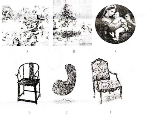 32.(3分)举世瞩目的2008年北京奥运会即将召开,为迎接八方来客,某酒店推备装修客房。设计师提出了中国古典风格、西洋古典风格、现代风格三种设计方案。请你帮助选择与上述设计风格一致的美术作品和家具各一件。