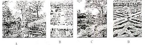 33.(2分)明代著名的园艺著作《园治》中提出的园林设计和建筑理想是:“虽由人作,宛自天开。”而17世纪法国造园大师勒·诺特提出的园林设计原则是:“要强迫自然接受匀称的法则。”从中国传统文化尊重自然规律,崇尚自然美的理念出发,下列四幅园林图片中具有中国古典园林特点的是 、 。