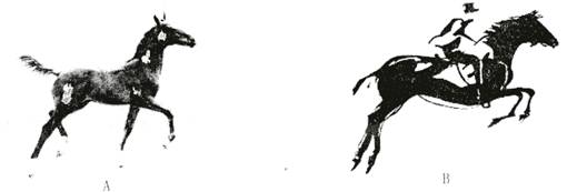 ②仔细观察,对比现实中奔跑的马与绘画作品中的马奔跑时四踢动作的不同是
