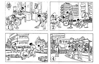 请你按照图片顺序,以“Community Service”为题,向学校英文校刊投稿,介绍这次活动情况。