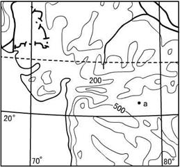 (3)图a是图b阴影部分海湾放大图,请选择①②③④四地中最适宜建港口位置,并说明理由。(6分)