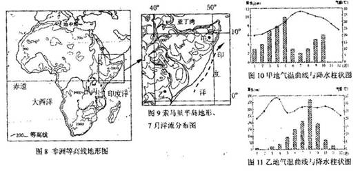 (4)当近地面空气中水汽达到过饱和状态时,就会产生浓雾,并对交通运输造成较大的影响。试分析索马里半岛东部海域7月经常出现浓雾的原因。(4分)
