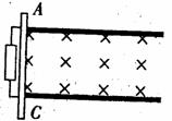 21.如图所示,一导线AC以速度v从金属轨道最左端匀速向右通过一有界匀强磁场,金属轨道间接有一阻值为R的电阻,其余的电阻不计,则在通过此匀强磁场的过程中,下列物理量中与速度v成正比的是 ( )