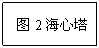 请根据下面的两幅图,介绍“海心塔”所在的位置,并描述“海心塔”塔身的形状特点。要求:连标点符号不超过60字。(6分)