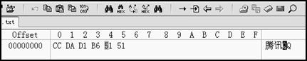 3.小张在用WinHex软件观察“腾讯QQ”这四个字符的内码时,显示的十六进制内码结果如图所示,那么“讯”字的内码是