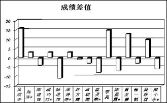 (5)现以工作表sheet1中的姓名和成绩差值两列数据区域为数据源,建立一张反映高一艺术类学生单科成绩变化情况图,如图所示,则两次考试成绩变化最小的学生姓名是 ▲ 。